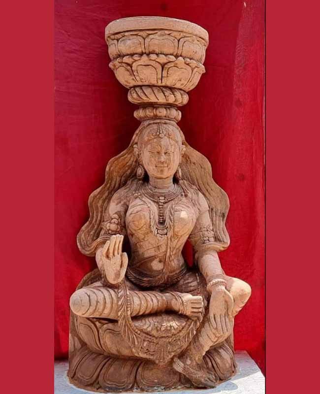 The Chaura features Goddess Brundabati carved gracefully beneath a lotus-style pedestal for the Tulsi plant. Tulsi worship is believed to attract positive energy, prosperity and health, making this Vrindavan ideal for courtyards, balconies, gardens, temple premises and home entrances.