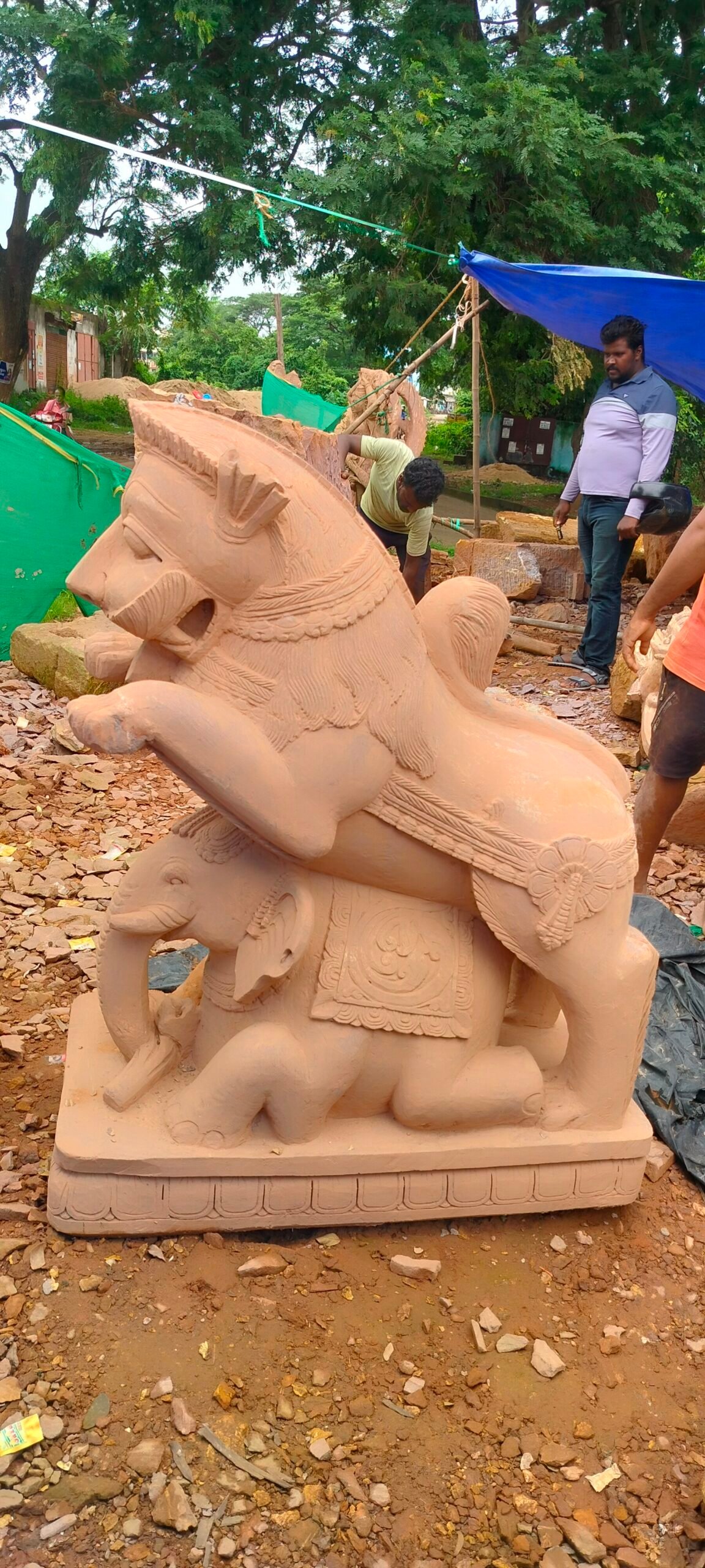 This sculpture is hand-crafted by skilled artisans using premium quality natural stone, featuring detailed carvings, ornamental patterns, and a bold majestic posture. The Yali is often placed at temple entrances, mandirs, heritage buildings, villas, gardens and courtyards as a symbol of courage, power, and divine protection.